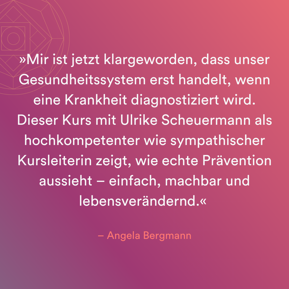 Der Kurs ist bewusst vielseitig angelegt – weil Gesundheit viele Seiten hat. Ob Du gerade erste Beschwerden spürst oder schon länger aus dem Gleichgewicht bist: Du wirst Dich in den Inhalten wiederfinden. Ulrike bringt 30 Jahre Erfahrung mit Menschen in unterschiedlichsten Lebenslagen mit – und begegnet Dir mit Empathie und Klarheit.