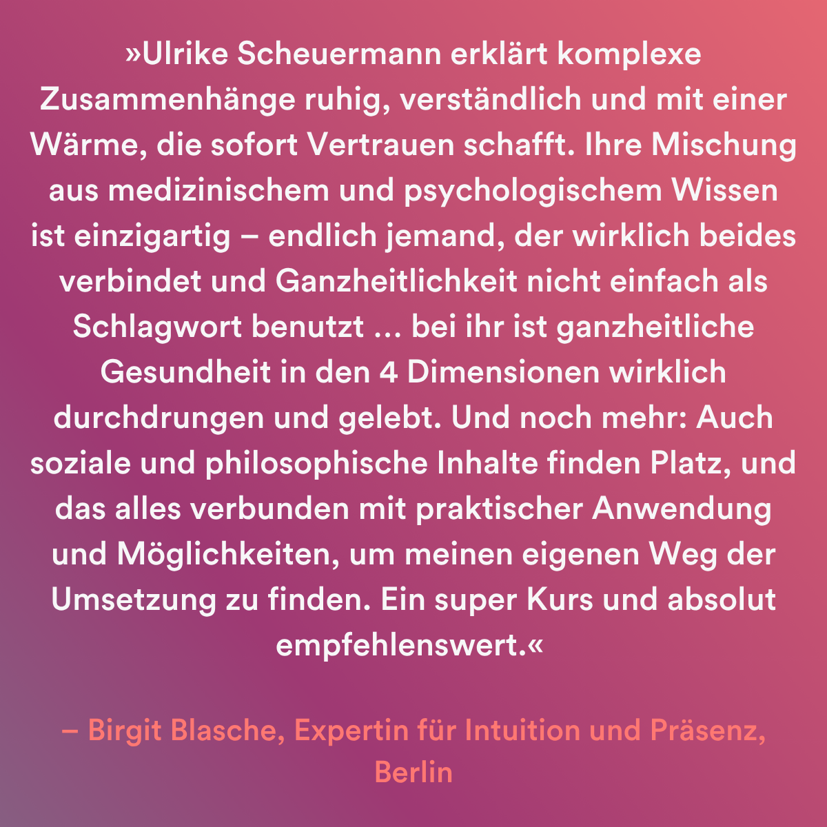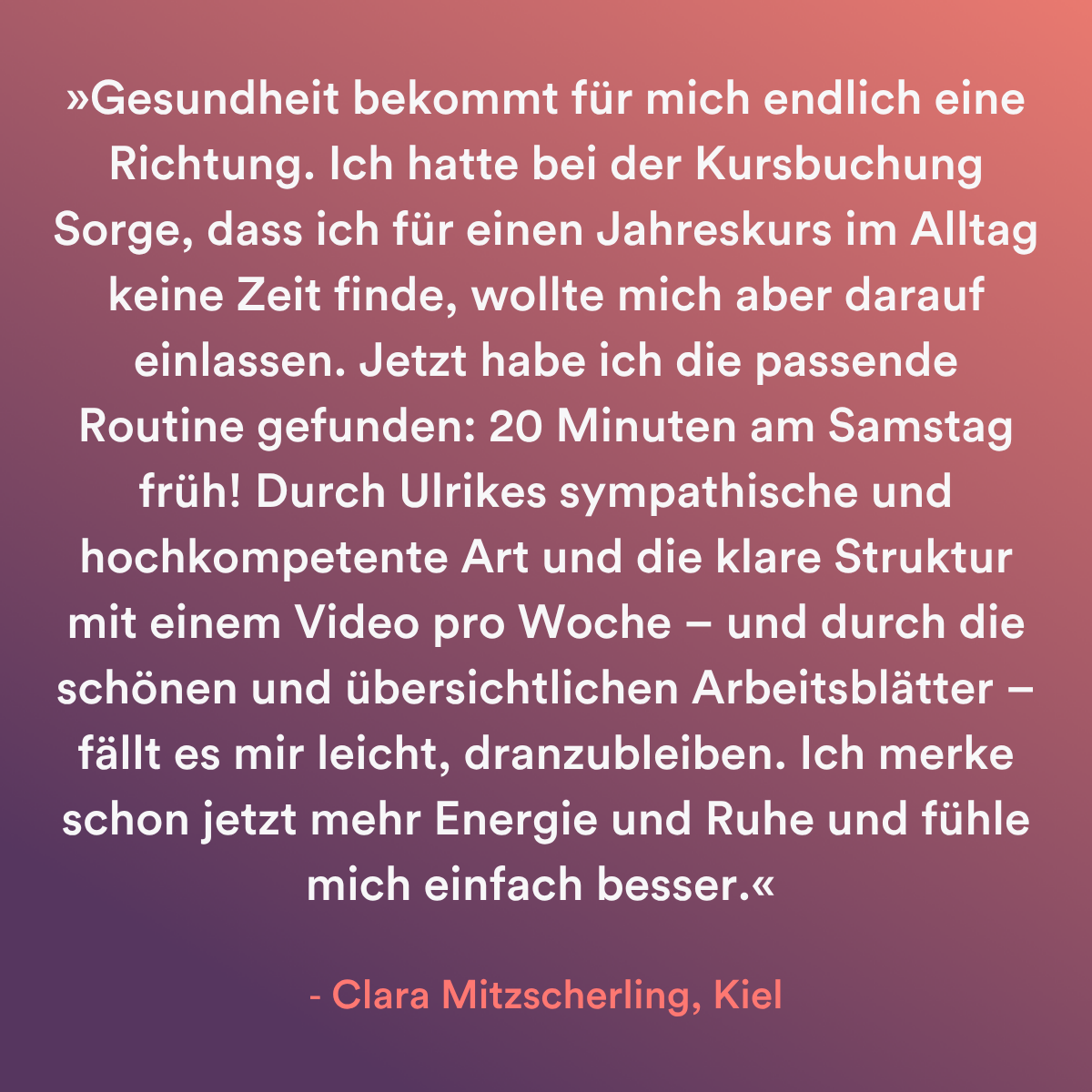 Damit Du mit gutem Gefühl entscheiden kannst, bieten wir Dir ein kostenloses 20‑minütiges Klärungsgespräch mit Ulrike an. In diesem Gespräch schauen wir gemeinsam, wo Du aktuell stehst in den vier Dimensionen „Körper, Psyche, Beziehungen, Sinn“ und ob dieser Kurs genau das passende nächste Kapitel für Dich ist. Du musst Dich zu nichts verpflichten – nur schauen, ob es sich richtig anfühlt. Hier kannst Du Dein Klärungsgespräch buchen.