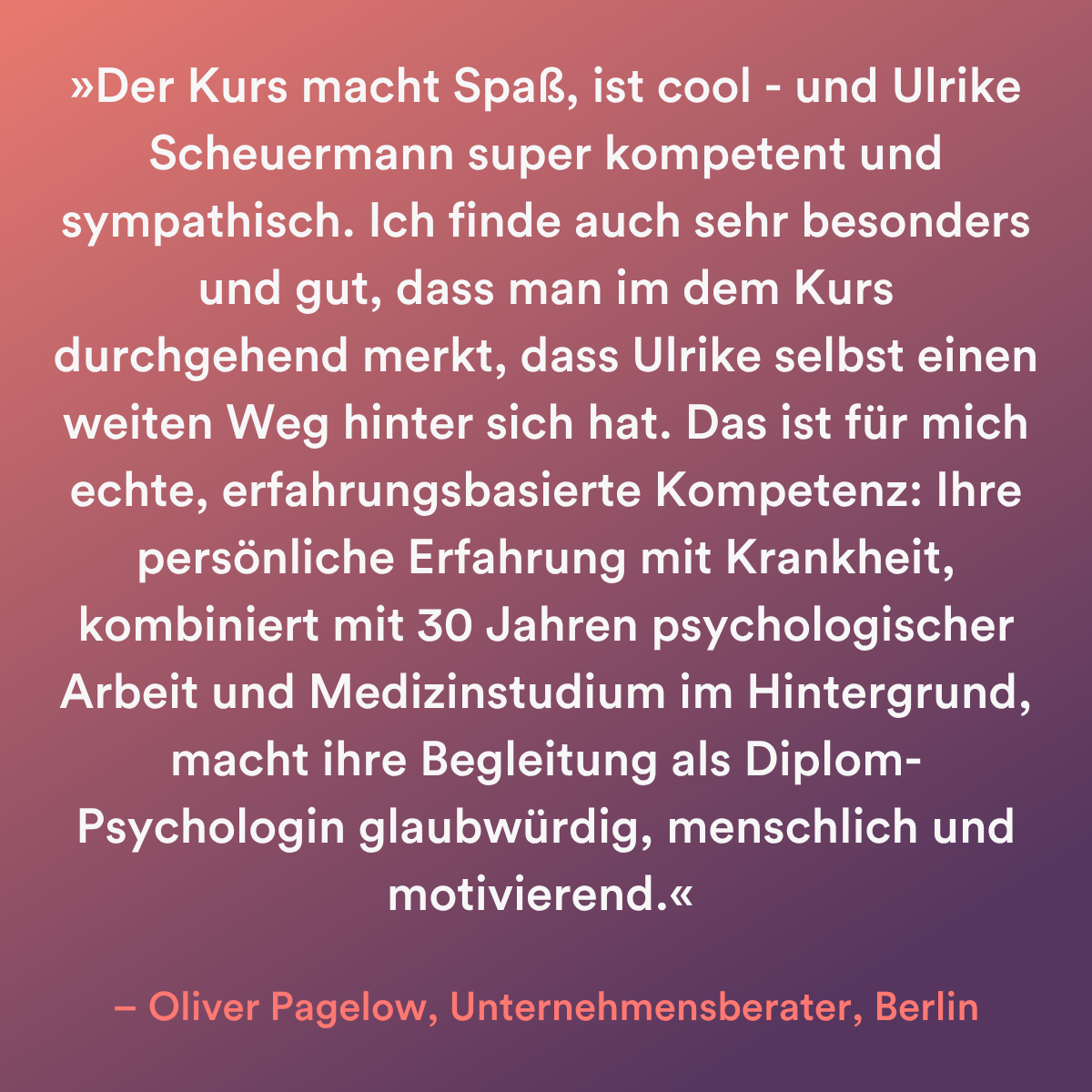 Ein großer Unterschied: Ulrike begleitet dich persönlich durch den Kurs.