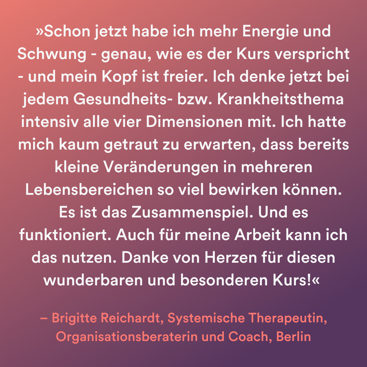 Du schaffst es, langfristig und in allen 4 Dimensionen gut für Dich zu sorgen: Körper, Psyche, Beziehungen und Sinn.