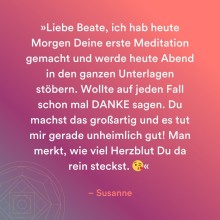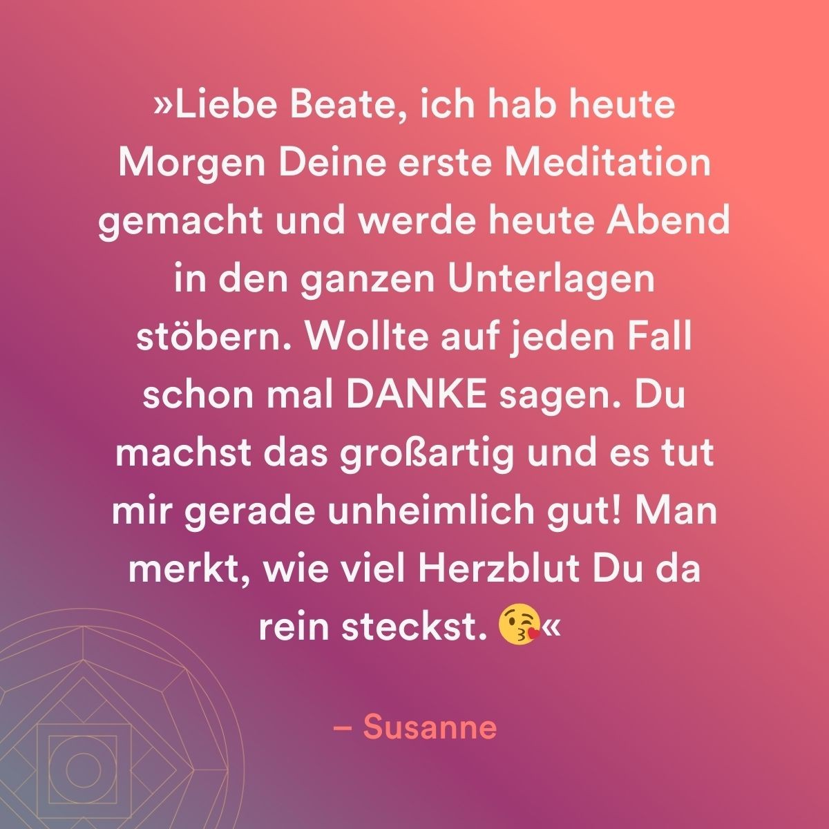 Jeden Tag öffnet sich ein neuer Abschnitt mit Beates persönlicher Video-Botschaft und Bonusmaterialien für Dich – liebevoll geführt, klar strukturiert und im eigenen Tempo nutzbar.